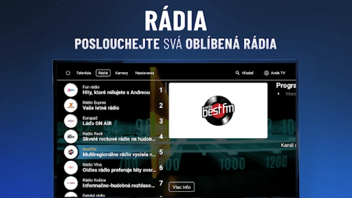 Přeneste si oblíbenou televizi kamkoliv a užijte si neomezenou zábavu s Antik TV. Tato aplikace promění váš mobilní telefon nebo tablet v plnohodnotné multimediální centrum, které vám kdykoli zpřístupní širokou škálu českých a slovenských televizních stanic. Ať už jste doma, na cestách, nebo kdekoli s internetovým připojením, vaše oblíbené pořady a zprávy jsou vždy na dosah ruky. Zapomeňte na pevné časy vysílání a sledujte, co chcete, kdy chcete.