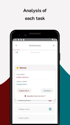 Místo suché teorie nabízí Polish B1 dynamický a interaktivní přístup k učení. Naše rozsáhlá sbírka testů pokrývá nejdůležitější gramatické jevy a slovní zásobu, které jsou nezbytné pro zvládnutí polštiny na úrovni B1. Každý test je pečlivě sestaven tak, aby simuloval reálné zkouškové prostředí, což vám umožní otestovat si své znalosti v praxi. S každou otázkou, na kterou odpovíte, získáte okamžitou zpětnou vazbu a podrobné vysvětlení pravidla, takže vždy pochopíte, proč byla vaše odpověď správná či nesprávná. Tento systém je ideální pro upevnění učiva a automatizaci správných jazykových vzorců.